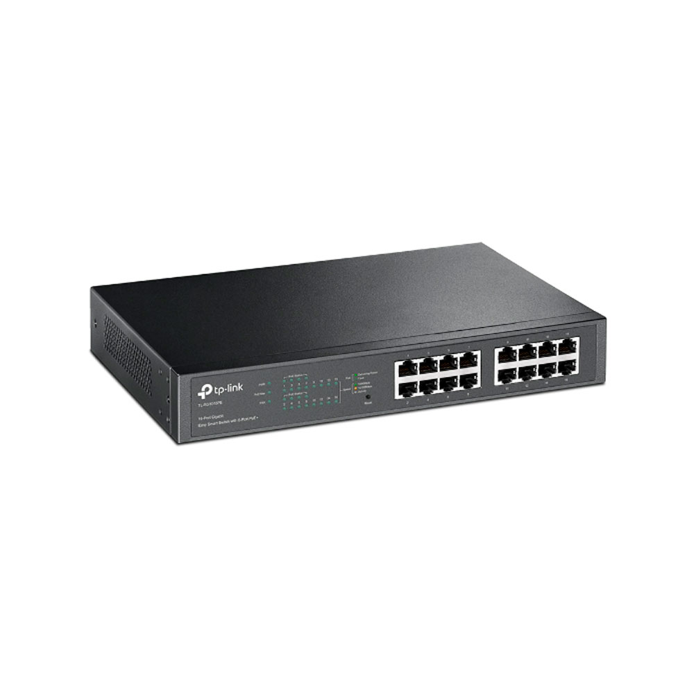 Switch PoE Easy Smart Gigabit de 16 puertos con PoE + de 8 puertos, 8 puertos Gigabit PoE +, 8 puertos Gigabit no PoE, 802.3at / af, potencia PoE de 150 W, caja de acero para montaje en rack de 1U, Recuperación automática PoE, MTU / Puerto / VLAN basada en etiquetas, QoS, IGMP Snooping, Web / Administración por medio de utilidad, Plug and Play